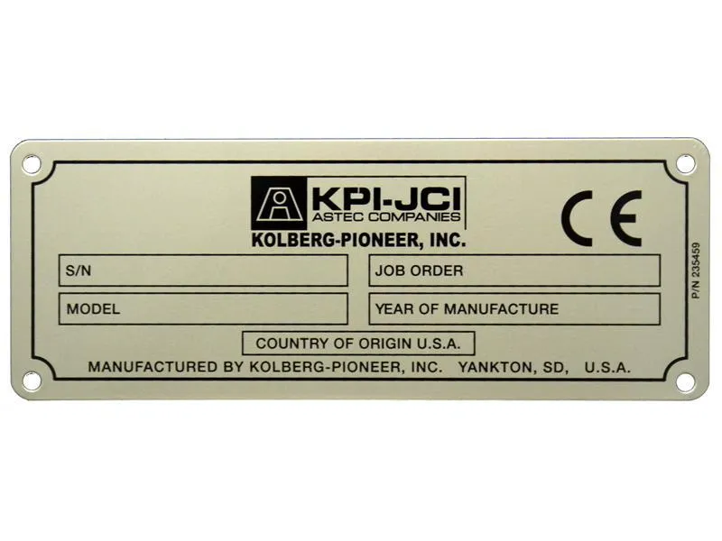 Durable aluminum, stainless steel, and brass plates. Anodized, etched, or screen printed for maximum durability in harsh environments.